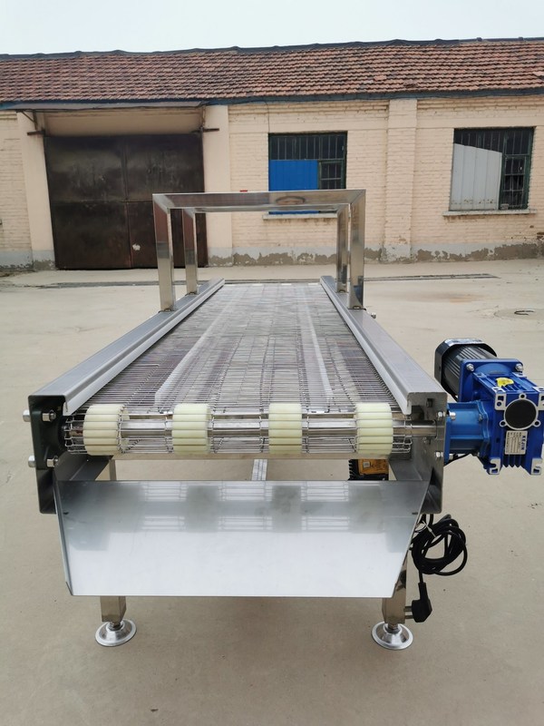 1.Le convoyeur est fabriqué avec du matériel en treillis métallique de qualité alimentaire et de bonne apparence, ne se déforme pas facilement, supporte les températures élevées et basses.